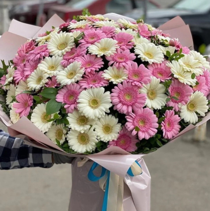 Букет из 101 белой и розовой герберой | Купить в Туле